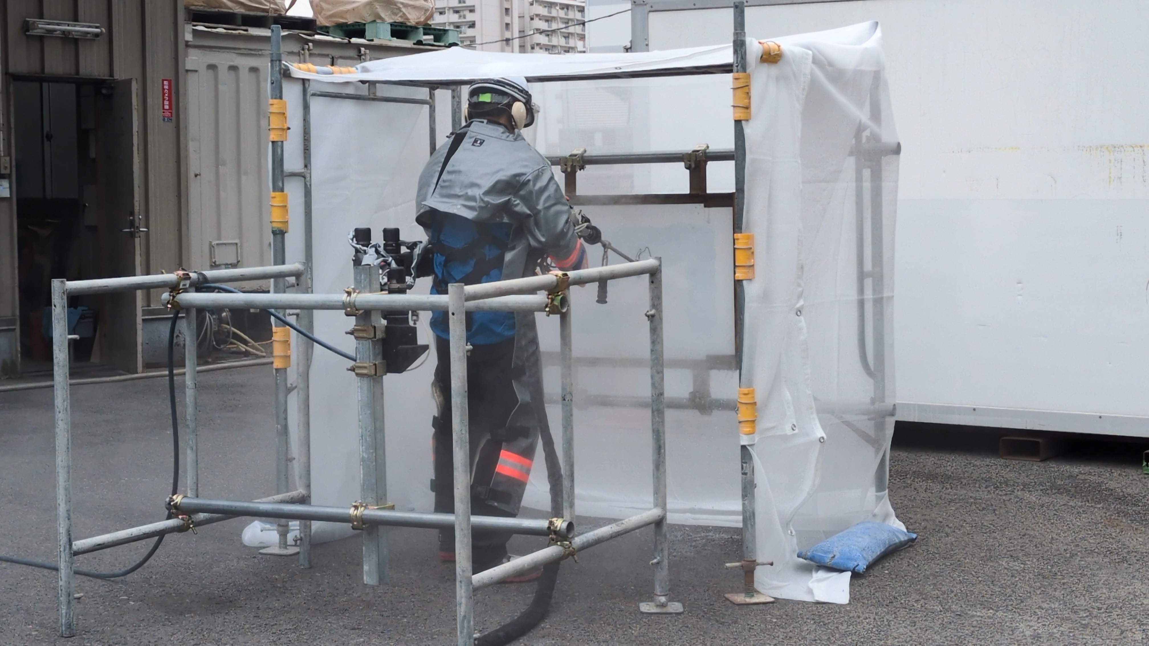 ㈱ケミカル工事本社にてWJガン補助アームの実機デモを実施しました。